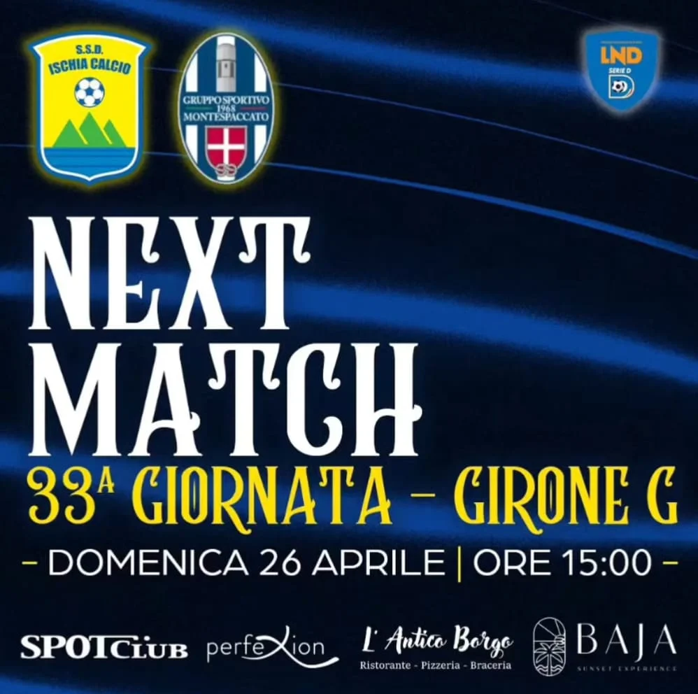 Domenica 26 aprile 2026 lo stadio Enzo Mazzella ospita una partita che per l’Ischia vale tantissimo. Nella 33ª giornata del Girone G di Serie D, i gialloblù sfidano il Montespaccato in un momento decisivo della stagione.